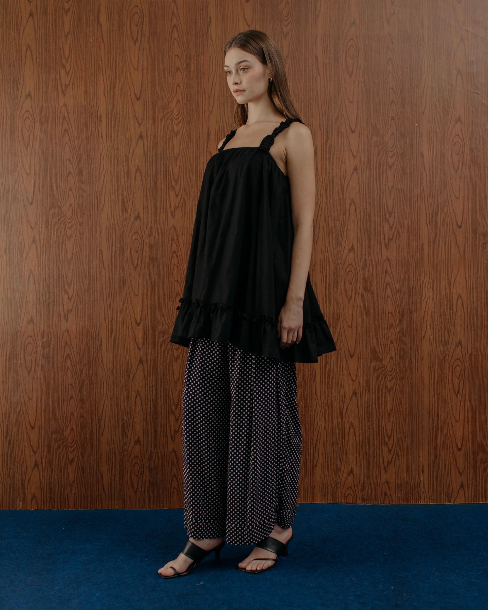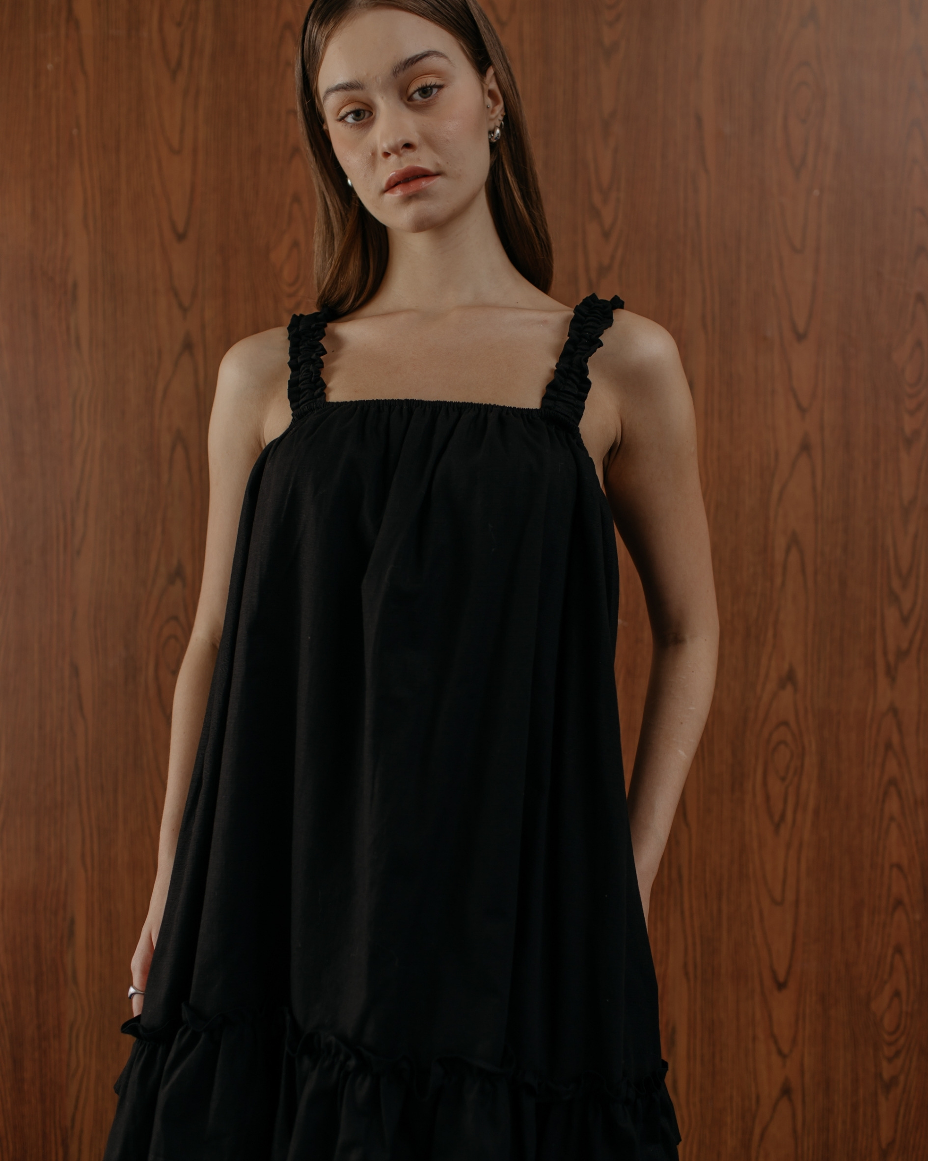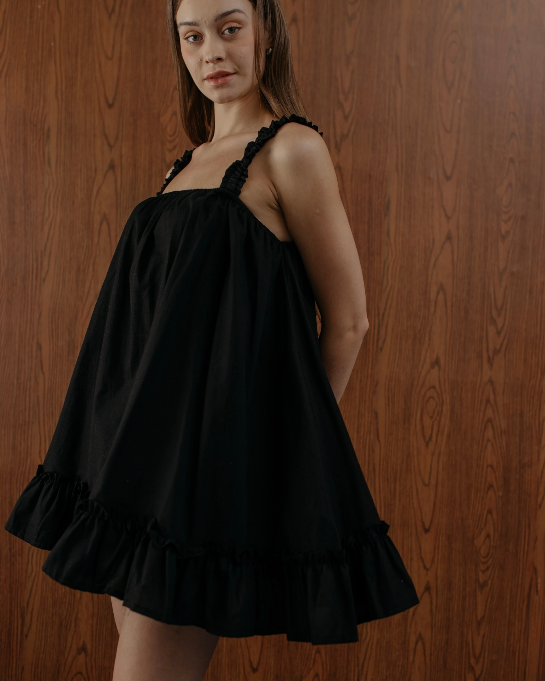 Cotton mini with soft gathers and subtle ruffle hem. Lightweight, flattering, and perfect for warm days or spontaneous outings.