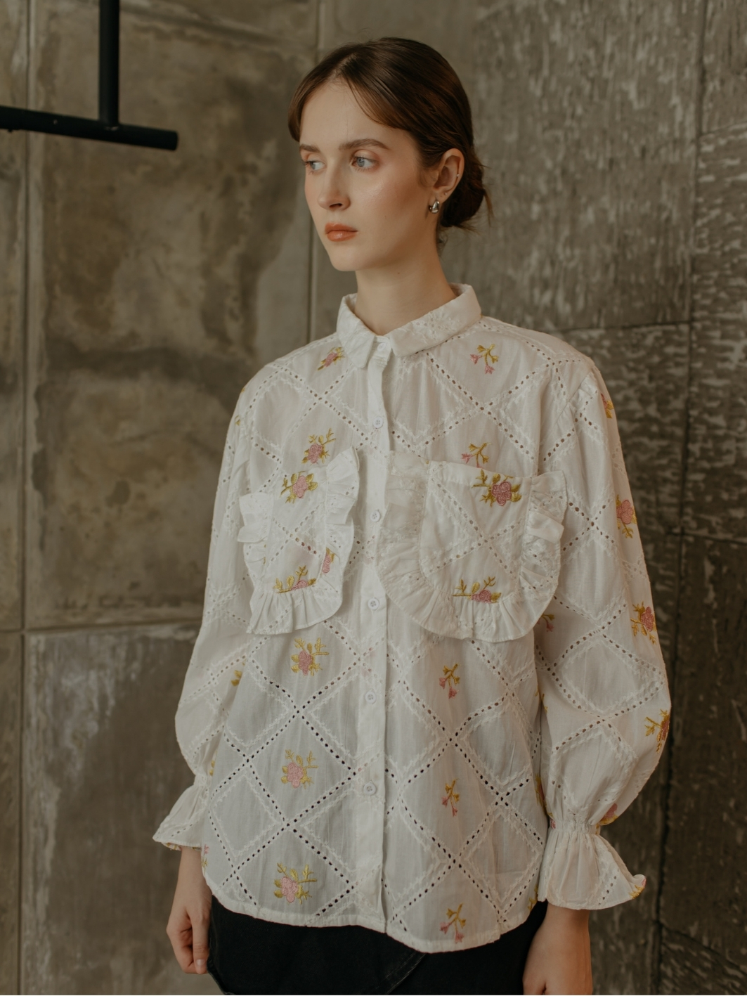 Stylish, breathable, and versatile. Features embroidered details, elastic sleeve cuffs, and front pockets for an effortless look.