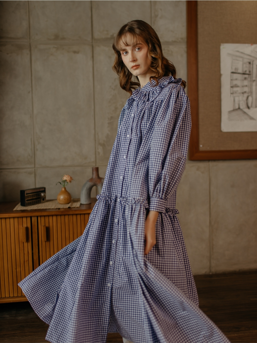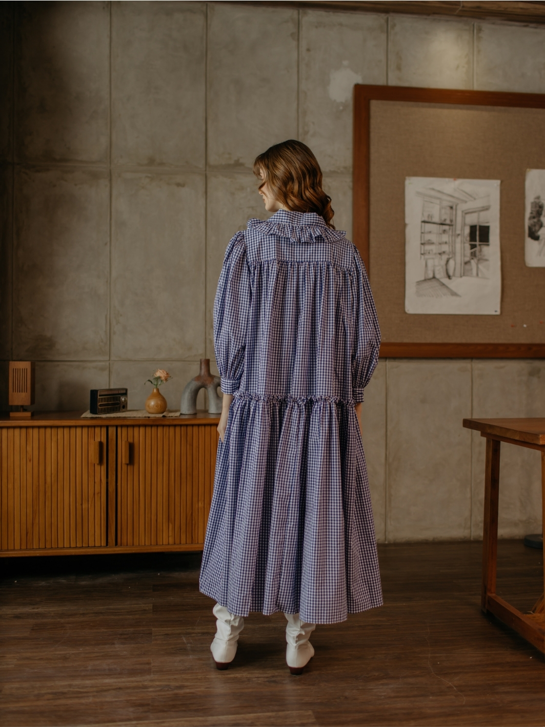 Cozy, chic, and effortlessly stylish. Designed with a relaxed oversized fit (up to XXL), soft puffy sleeves, and a flowy cut, this blue plaid dress is perfect for any time, anywhere.
