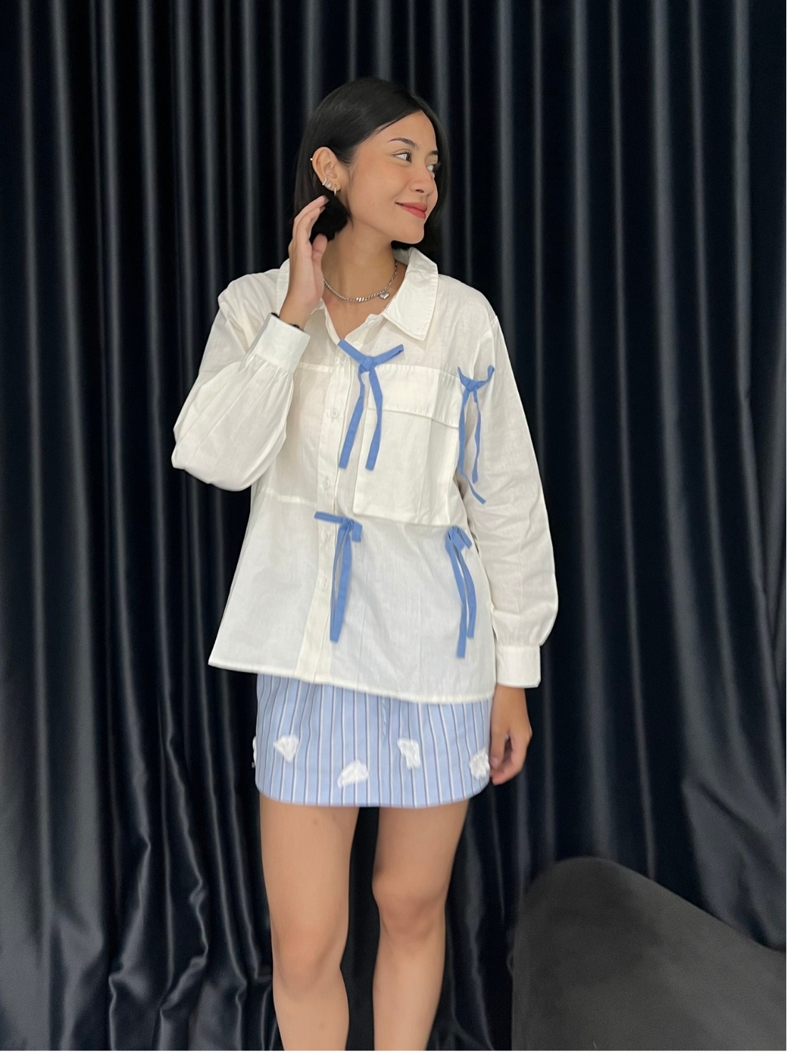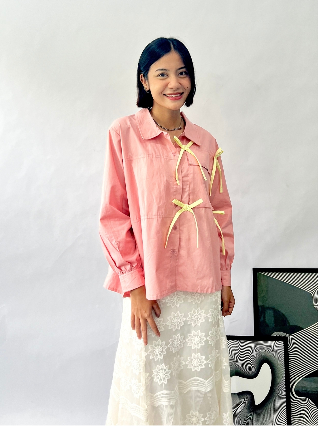 This unique top features cute ribbon details at the front, adding a fun and stylish touch to your look. Made from soft, breathable cotton poplin, it’s perfect for staying cool and comfortable. Available in white and pink, this top is your go-to for effortless style and a little extra charm.