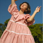 Romantic blouse featuring a statement ruffled collar with tie ribbon. The subtle polka pattern adds a playful twist — perfect for brunch dates or semi-formal gatherings.