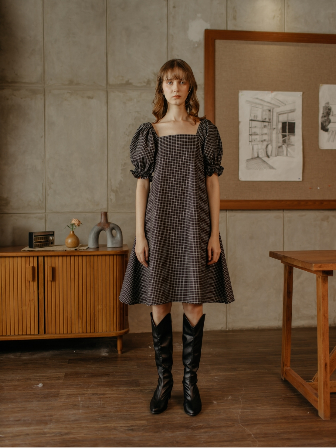A timeless mini dress with a chic plaid pattern. Made from premium cotton for a light and breathable feel, perfect for effortless daily wear. Versatile and
