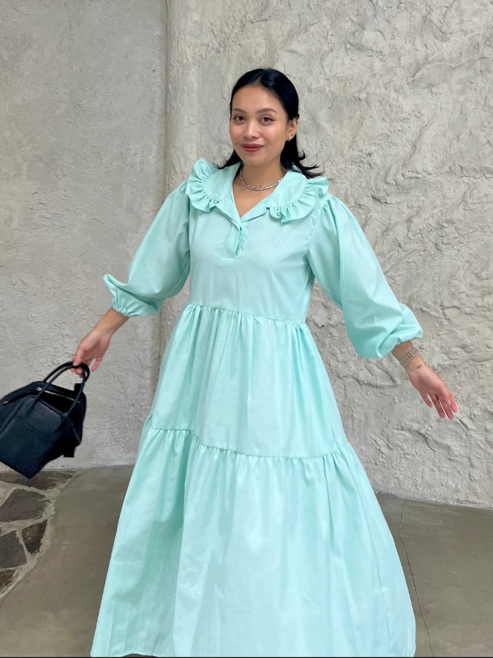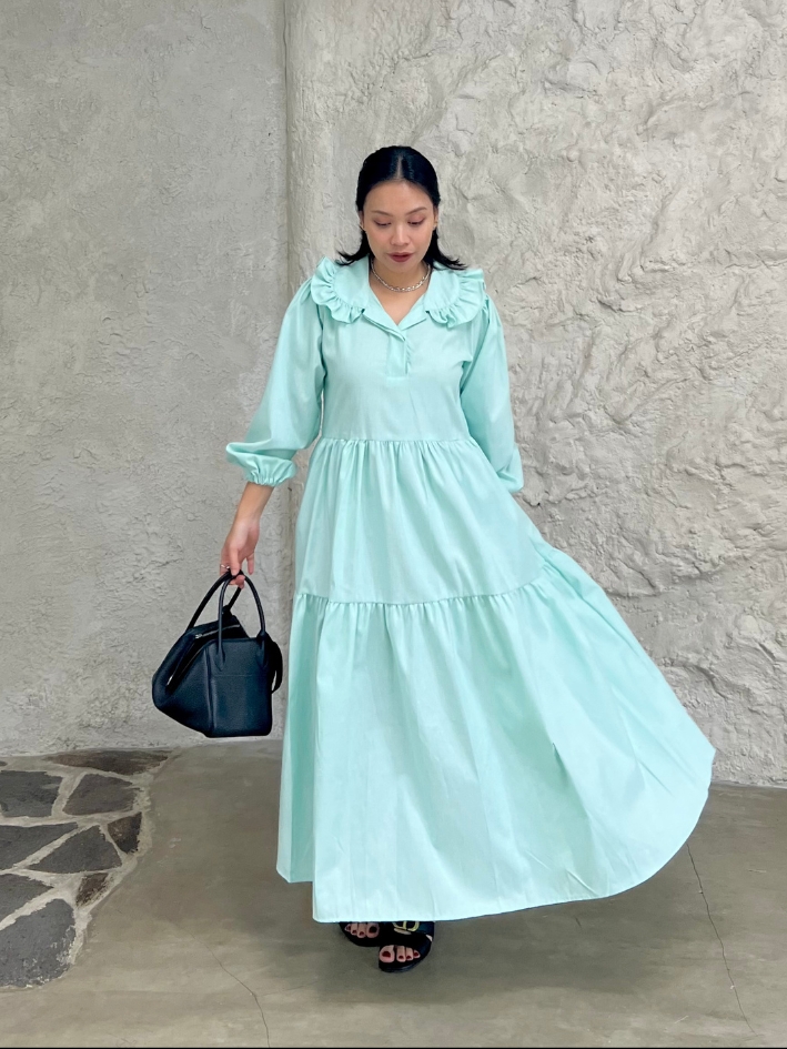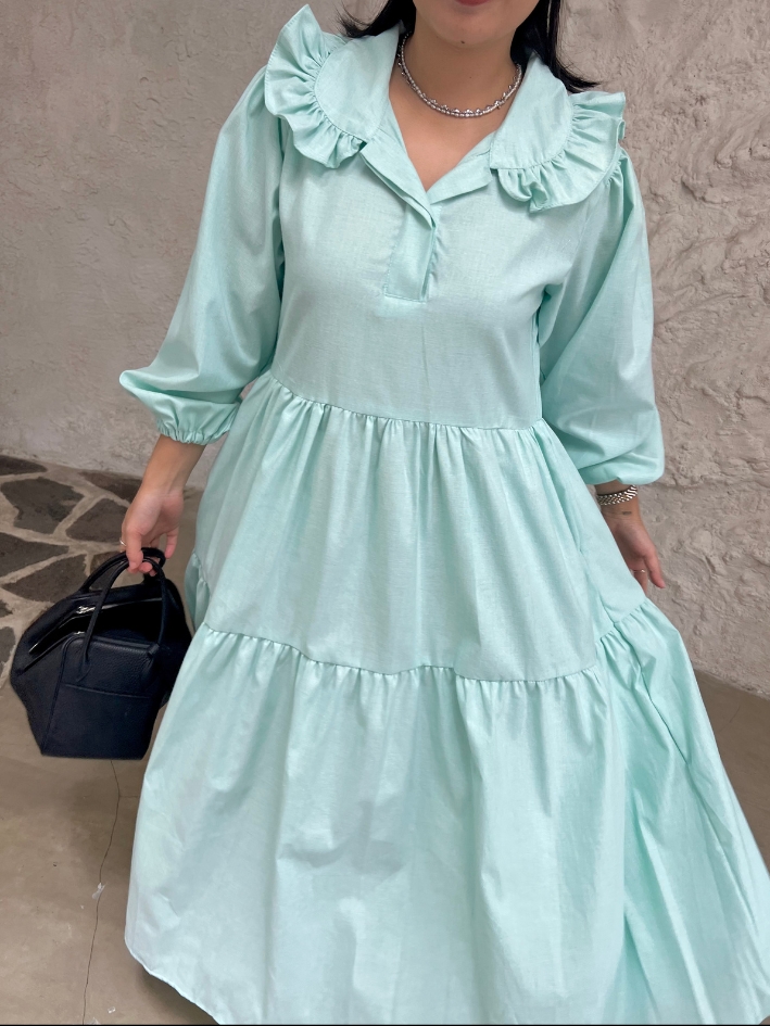 Stay chic and comfortable with Kiko Mint Long Dress. Its unique collar and timeless design make it the ideal weekend dress.