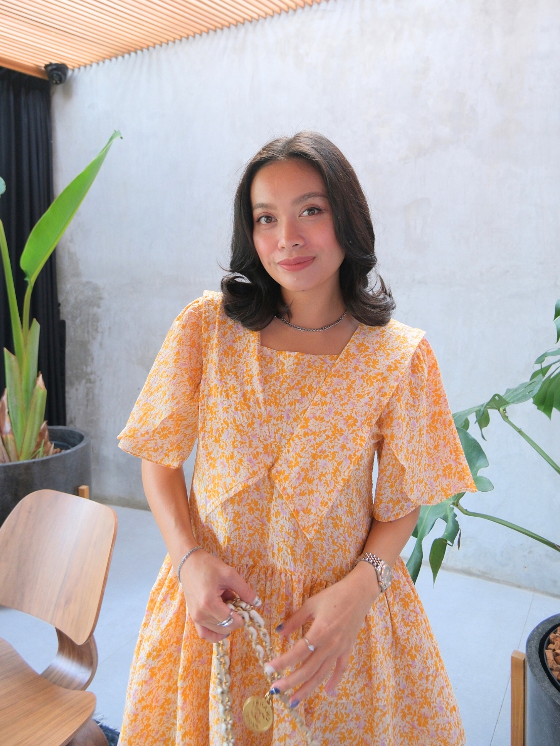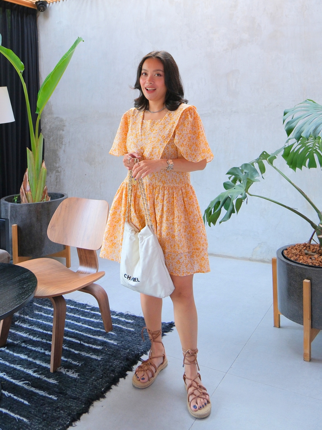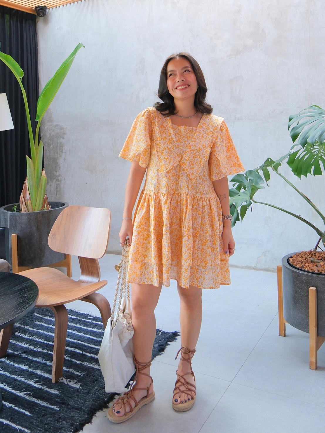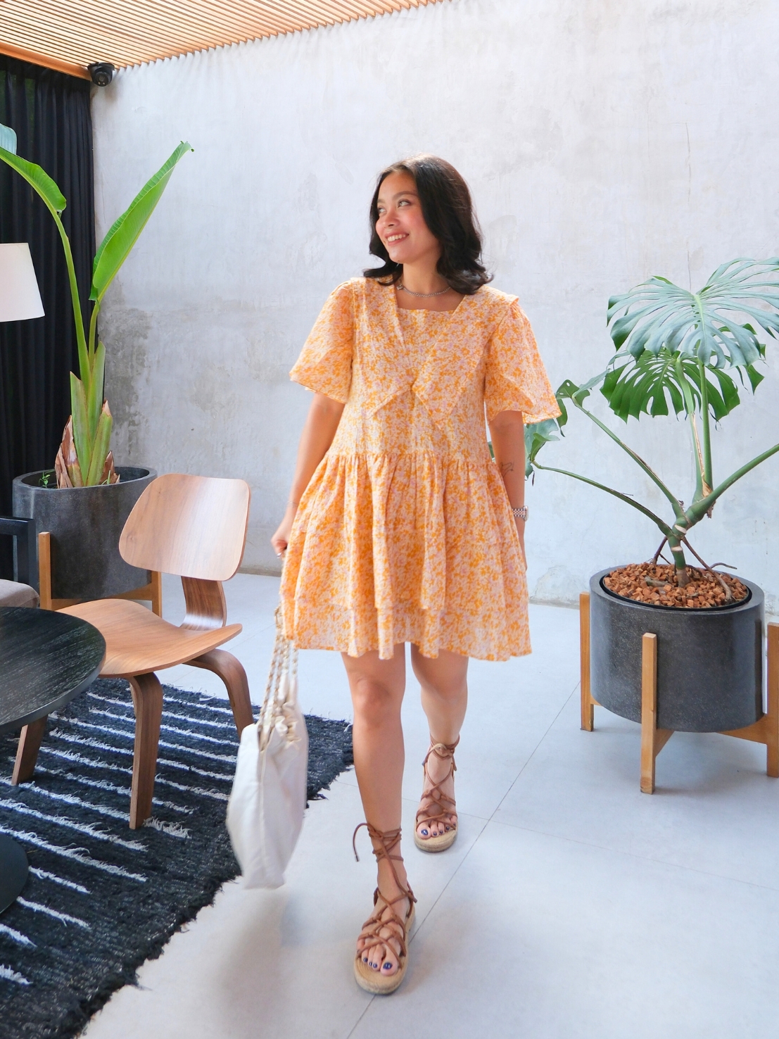 Your go-to mini dress for a sweet, effortless look. Crafted from breathable premium cotton with a playful orange floral print—perfect for vacations and beyond!