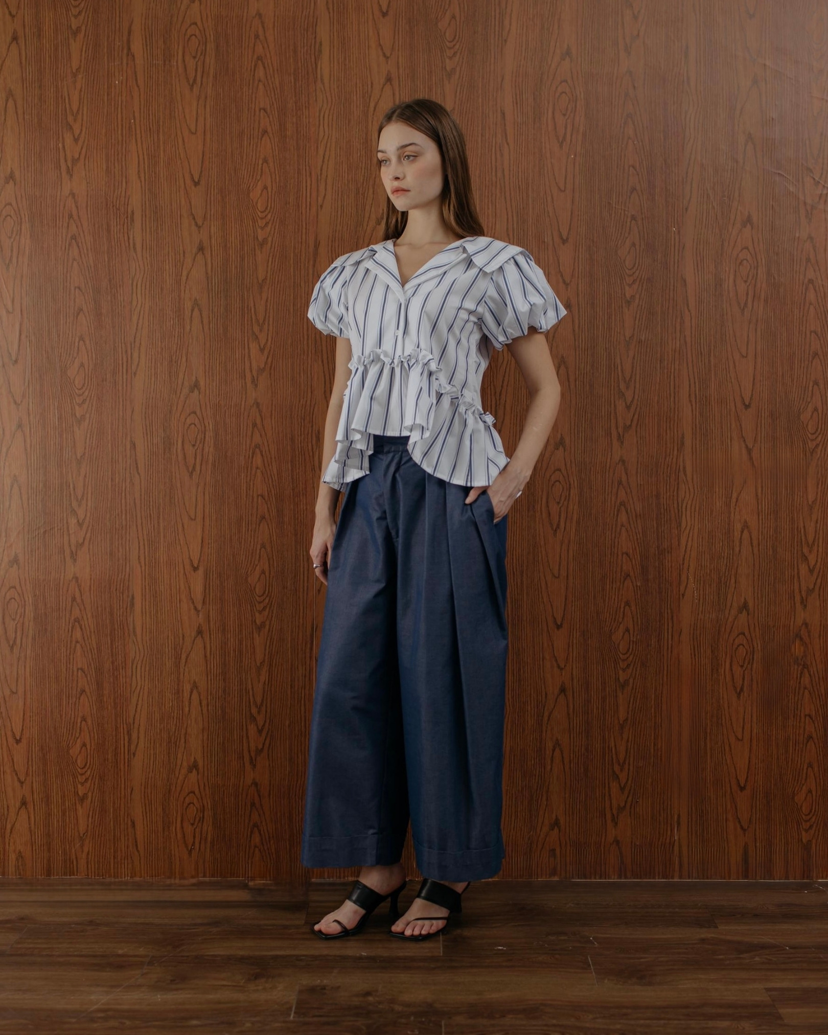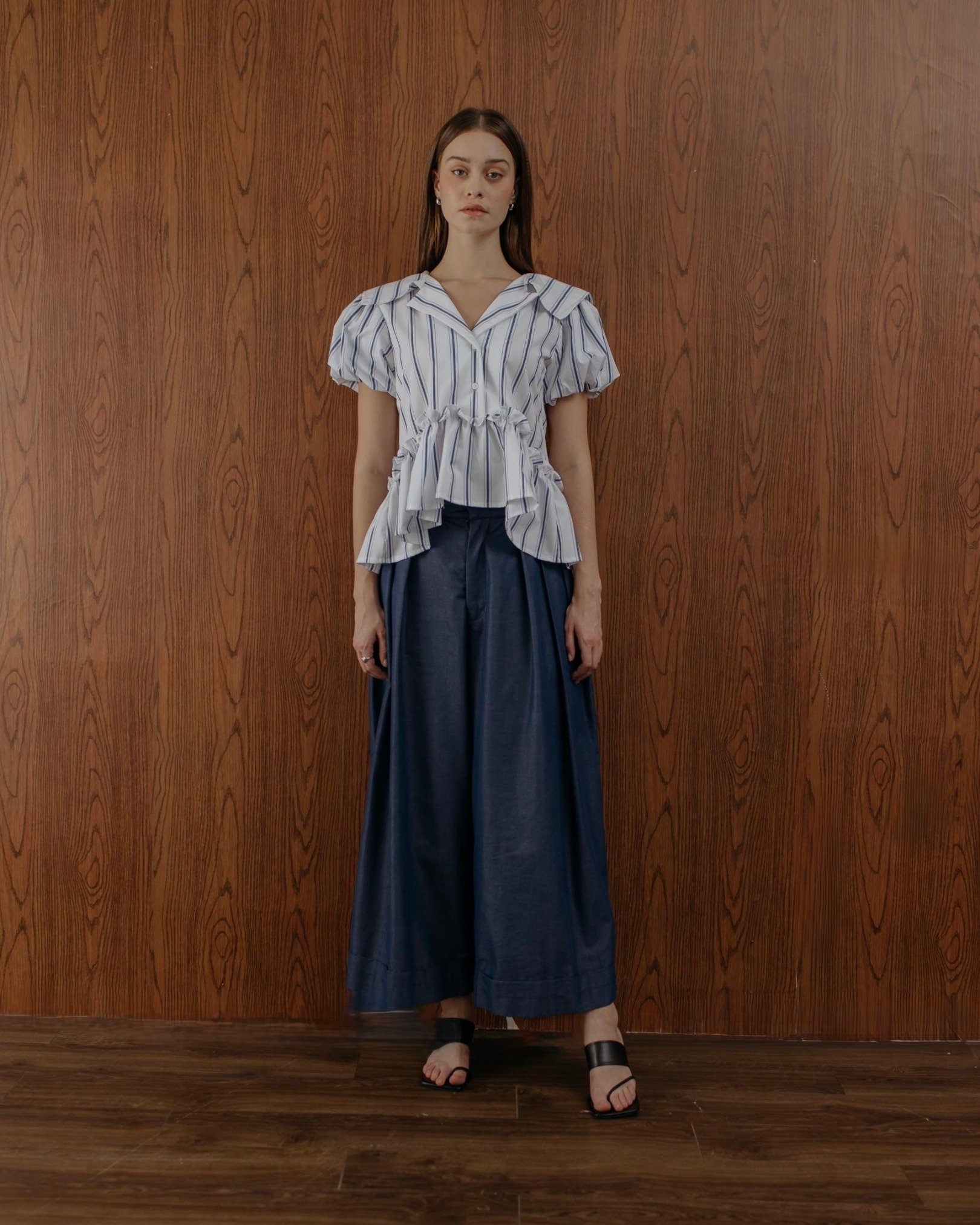 Effortlessly chic with puff sleeves and soft peplum detail.