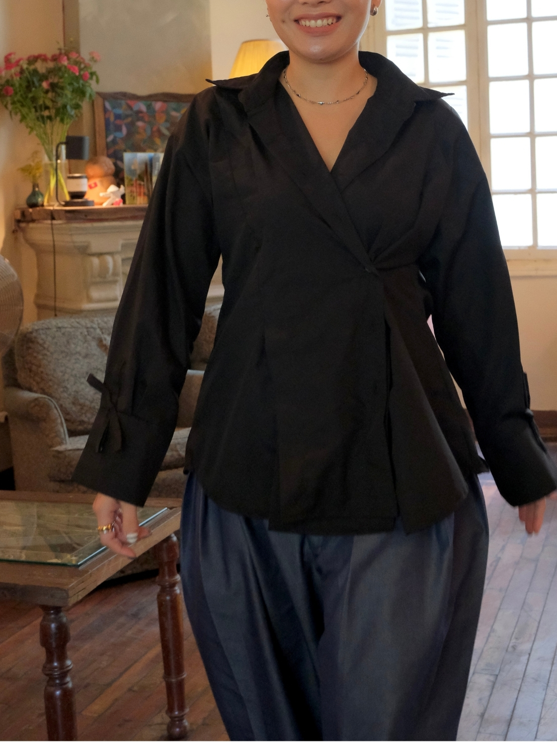 Noa Top is a must-have piece designed for everyday versatility. Available in three color options—Black, Cream Stripe, and Blue Stripe—it features a timeless silhouette with a unique twist. Wear it two ways thanks to the front and side button details, making it easy to switch up your look. Perfect for work, hangouts, or anything in between.