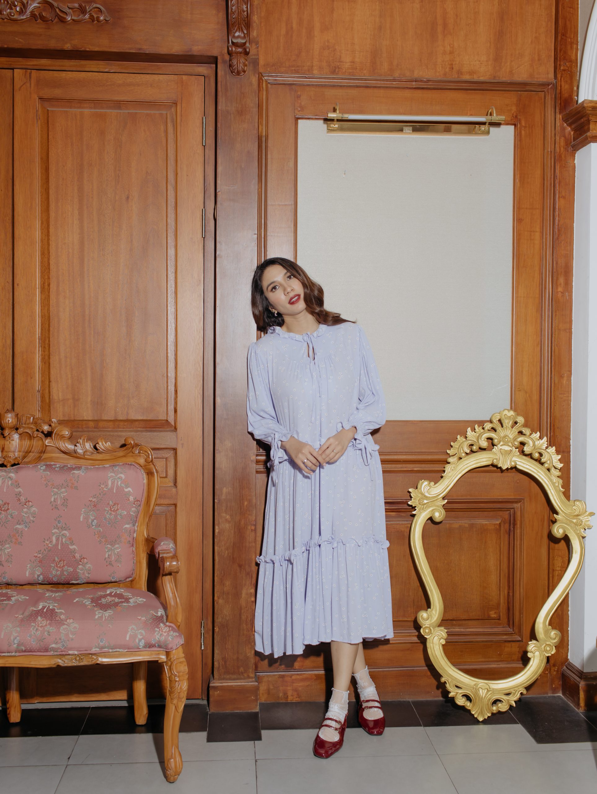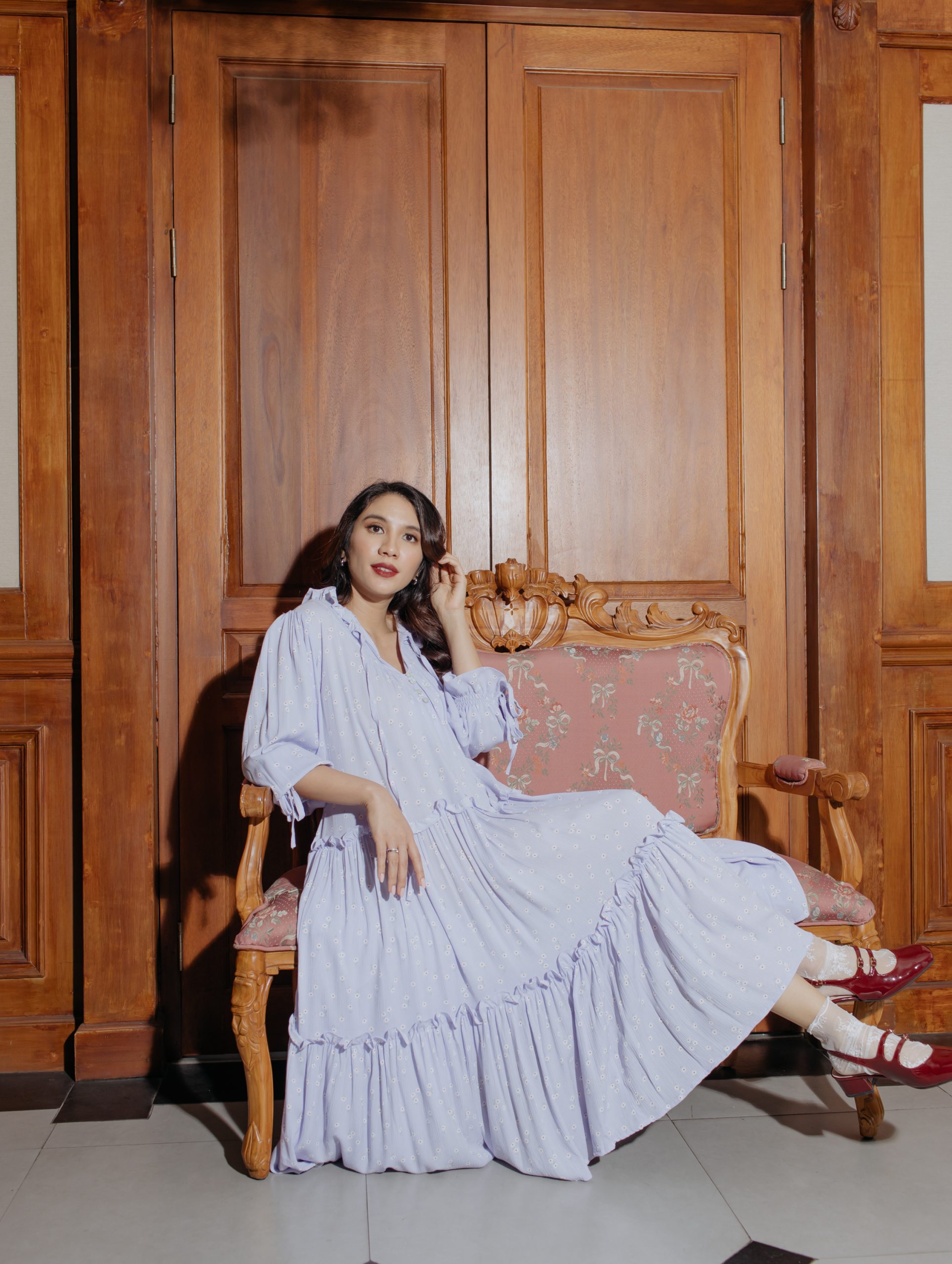 Embrace comfort and style with this lilac floral dress. The soft cotton fabric, ruffled collar, and adjustable elastic sleeves ensure a relaxed fit, while the breathable material keeps you fresh throughout the day.