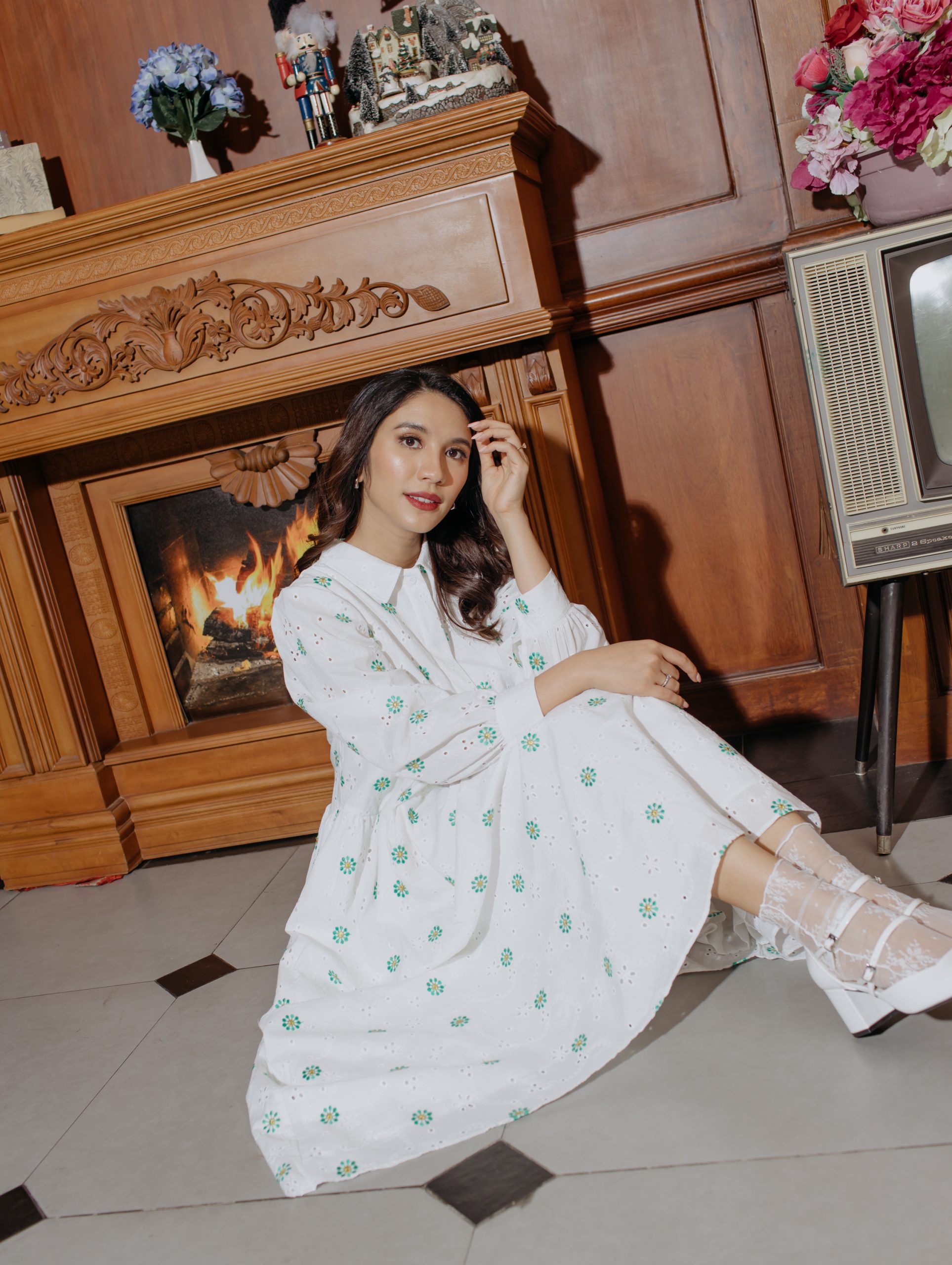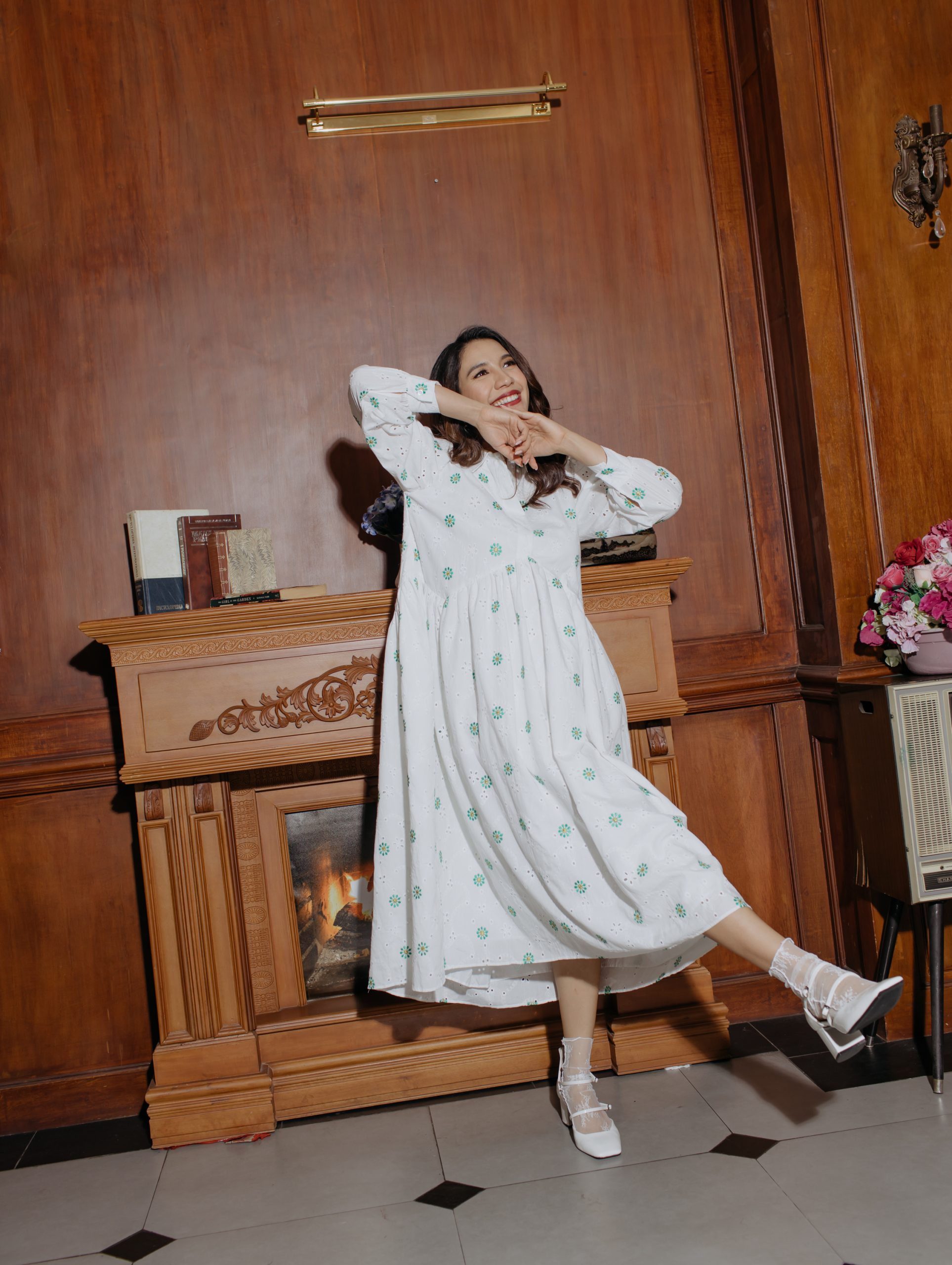 This light, breathable long dress in white cotton is elevated by fine green flower embroidery, creating a look that’s as fresh as it is classic. This dress features a soft inner lining for a smooth, comfortable fit.