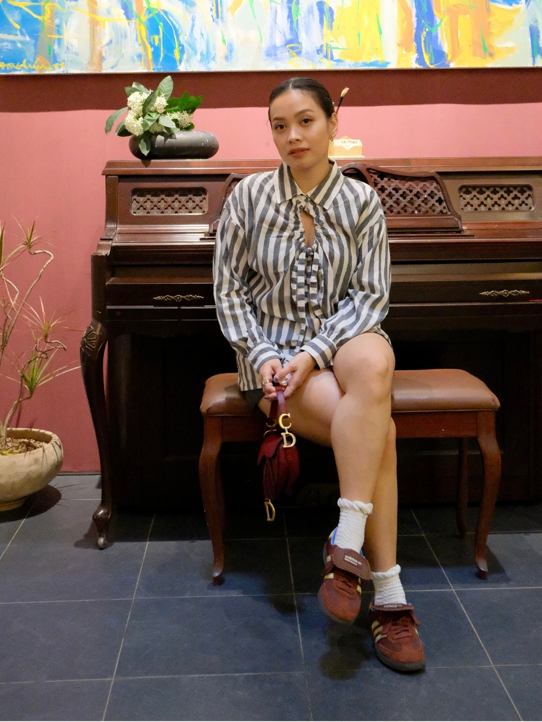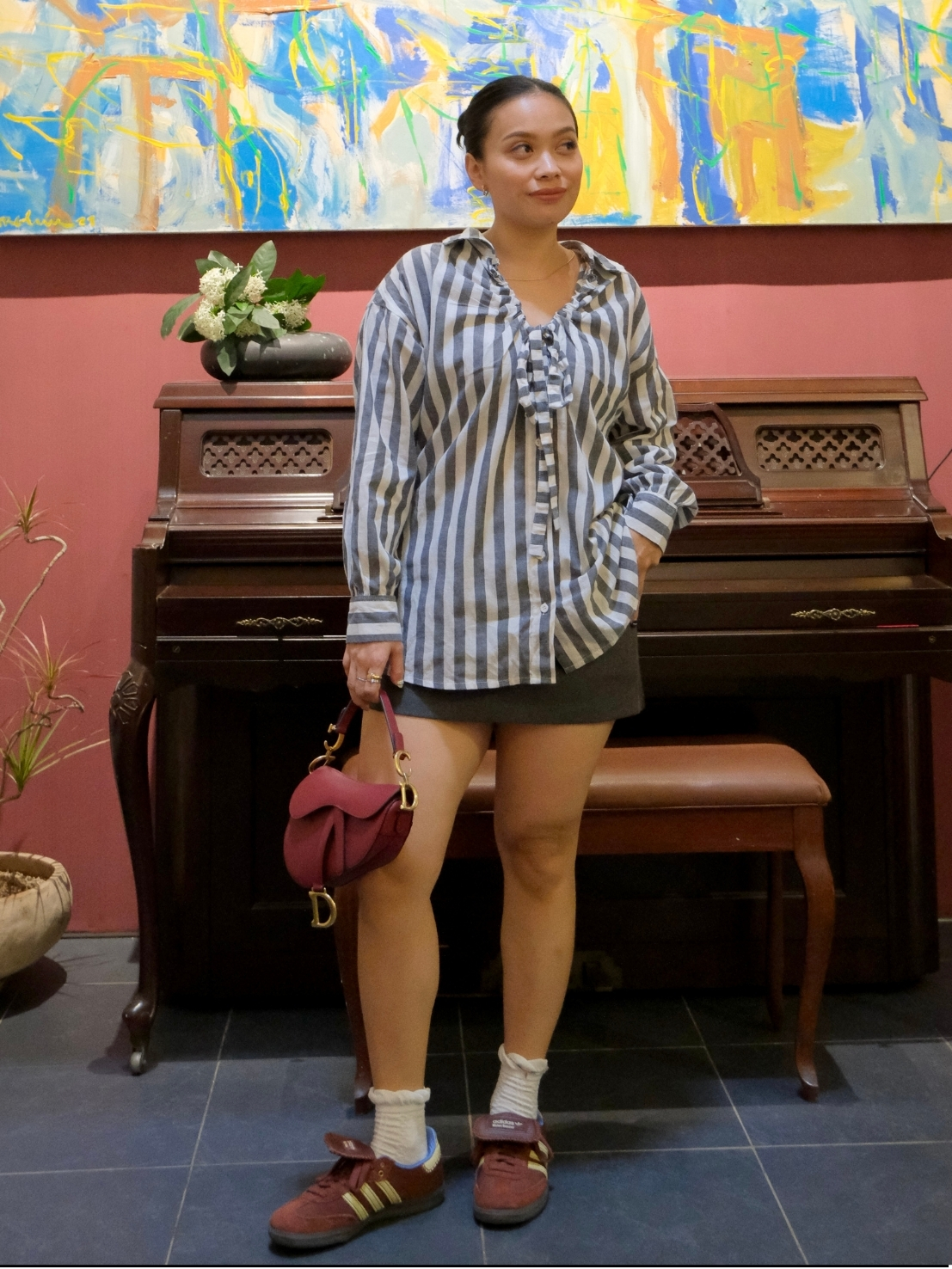 Revie Top is designed to be unique and versatile, offering two ways to wear it for different looks. Made from lightweight, breathable fabric, it’s perfect for daily wear. Available in three colors—Stripe Grey, Plaid Orange, and White.