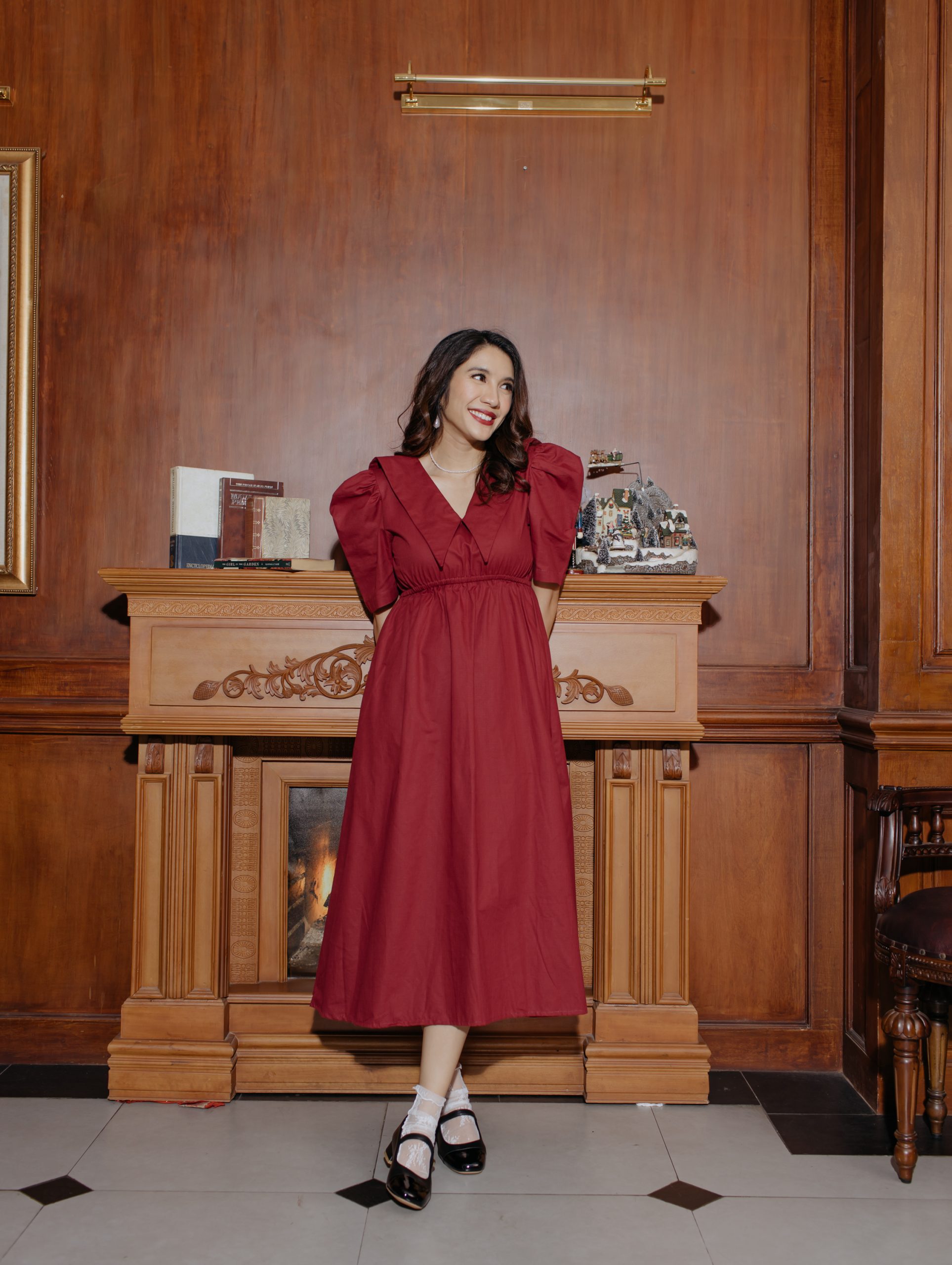 Elevate your daily wardrobe with this red dress in soft cotton cigarette. Its stylish simplicity, puffy sleeves, and adjustable elastic detailing ensure a perfect fit, making it a must-have.