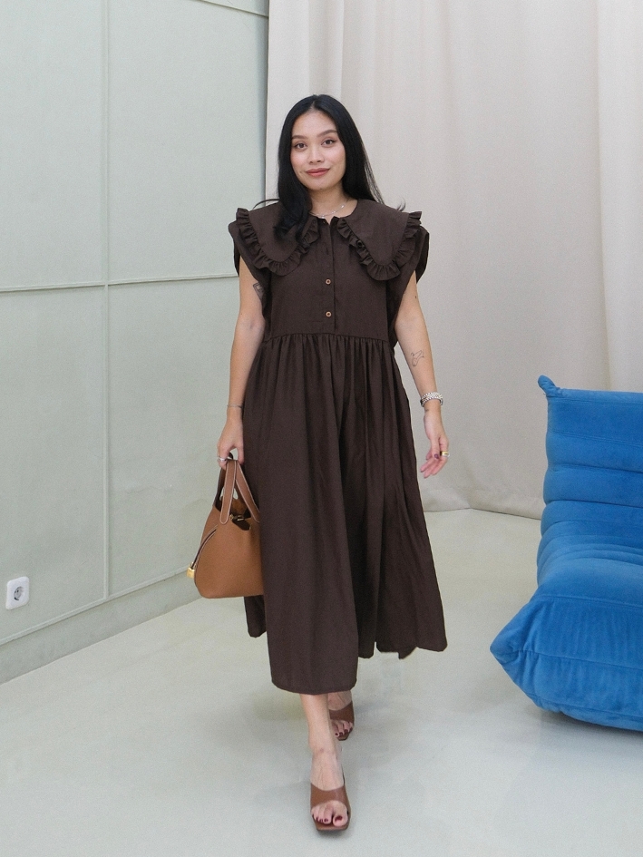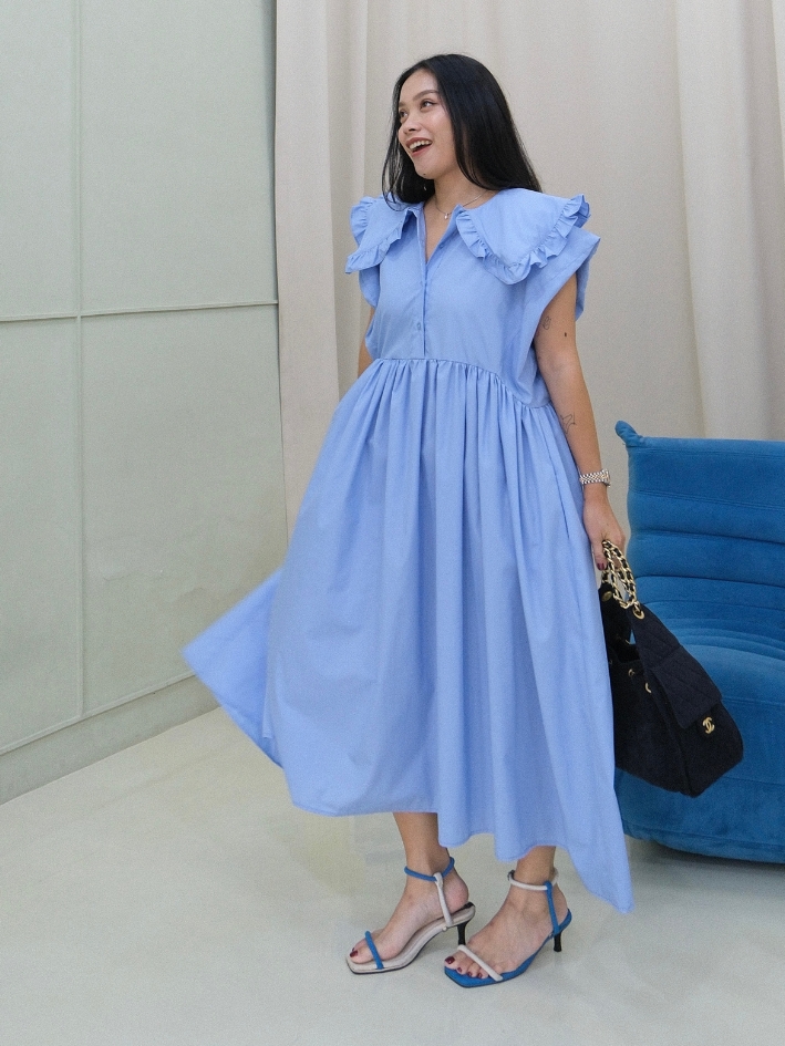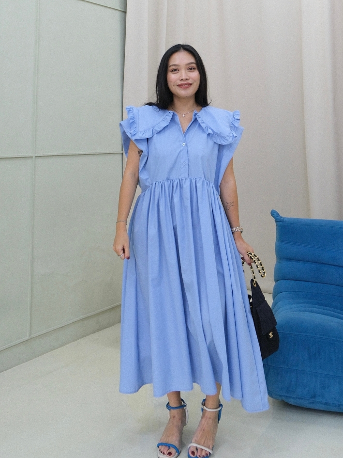 New in Soft Blue and Brown. A simple yet elegant design, crafted from breathable cotton poplin. Busui-friendly and versatile — perfect for daily wear, from casual outings to the office.