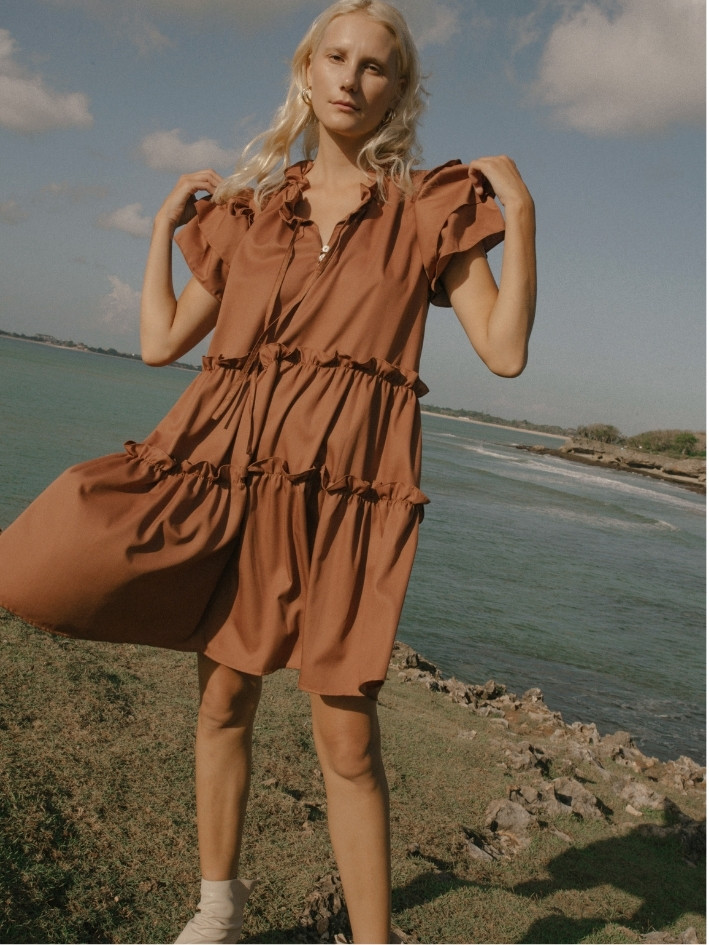 This midi stylish dress features ruffle cut details.