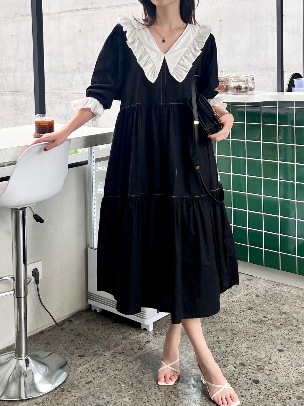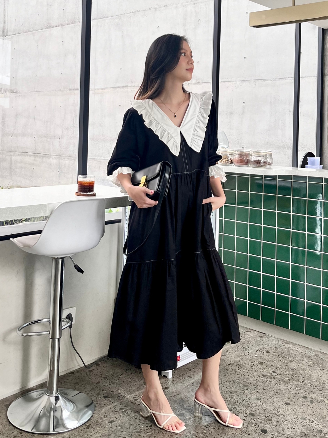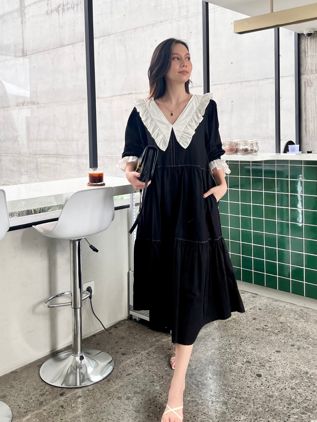Classic black with a twist. The Yuka Black Dress combines timeless elegance with modern details through its oversized contrast collar and flowy shape. Crafted from premium cotton for a breathable, all-day comfort you’ll keep reaching for.