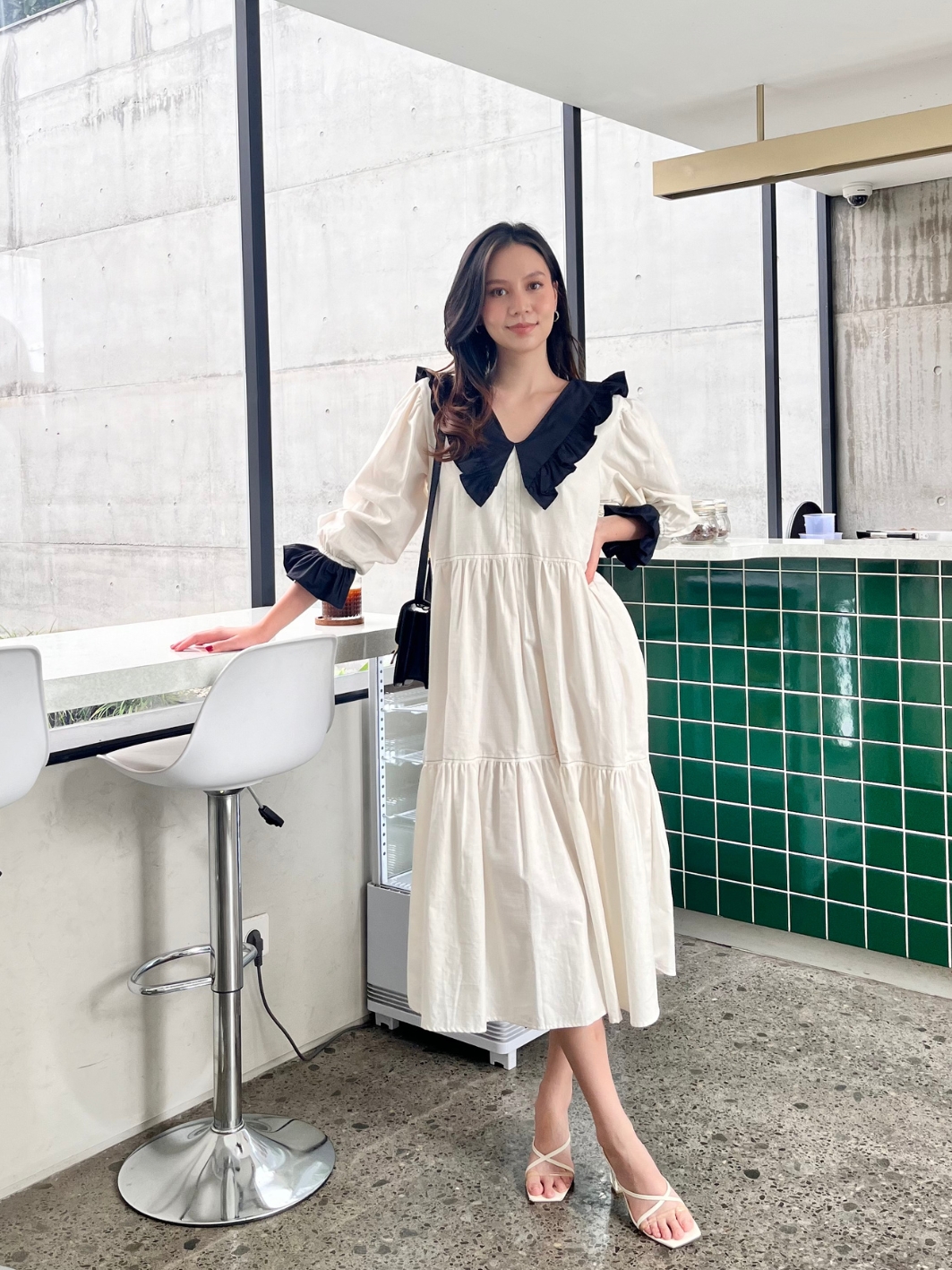 Soft, sweet, and endlessly versatile. The Yuka White Dress pairs a clean silhouette with a striking navy collar, making it a standout everyday piece. Made of premium cotton, it’s your go-to for easy yet polished looks.